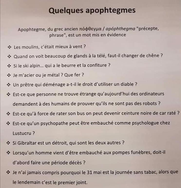 Mais oui ça existe: Un apophtegme est une parole mémorable ayant valeur de maxime, de dicton !