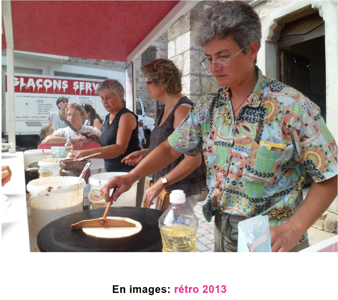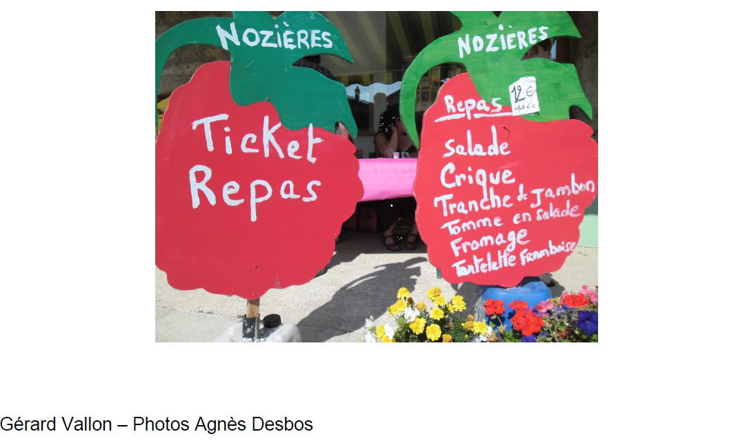Les tickets repas sont à retirer au point de vente, à côté de l’épicerie à partir de 10 h. Nous espérons vous compter parmi nous, le repas est « excellemment Ardéchois », la fête très animée!! Et riche en produits du terroir