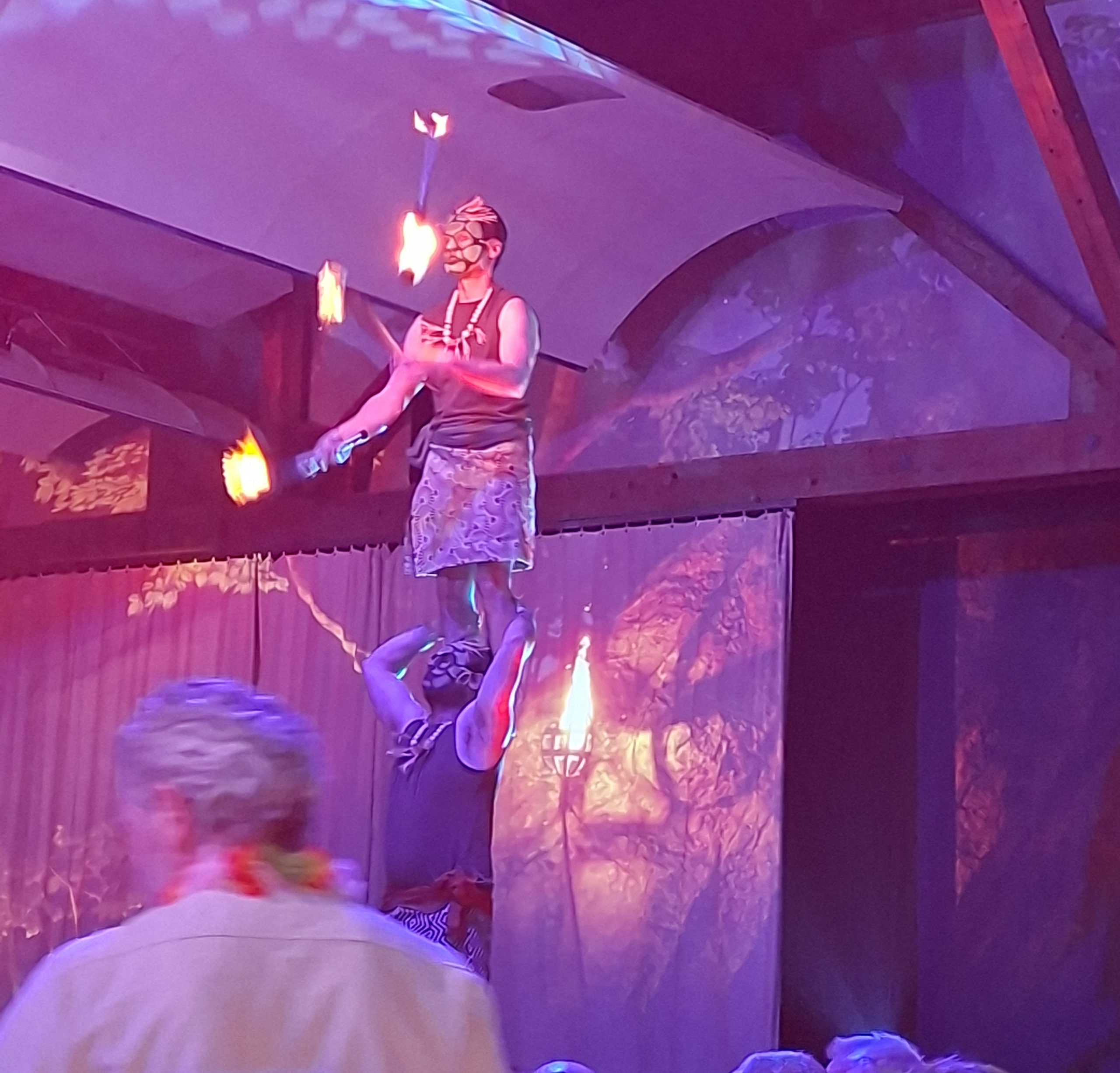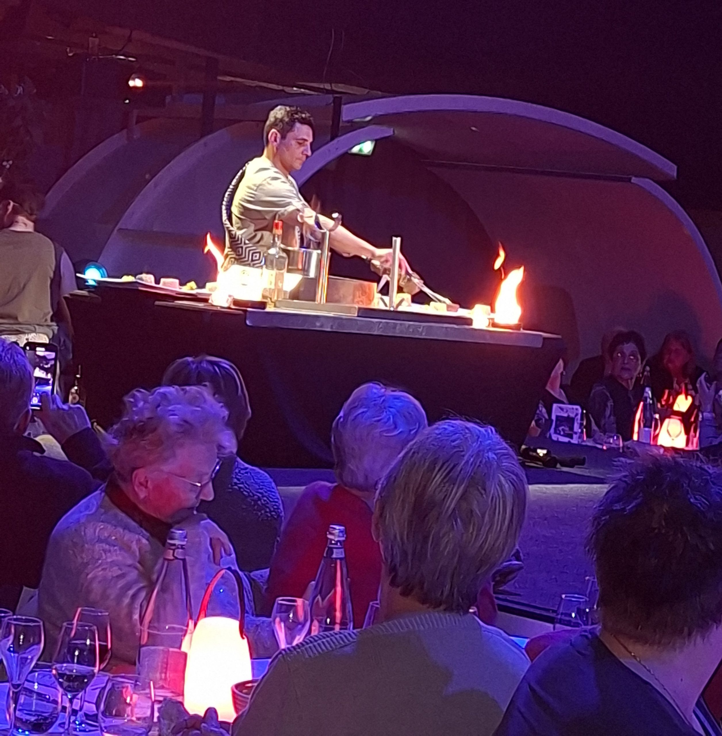 Au cours d’un délicieux repas, et pendant 3h30 de spectacle nous sommes passés du rire à l’émerveillement grâce à un cocktail explosif de comédie, et d’un show sonore et visuel époustouflant.