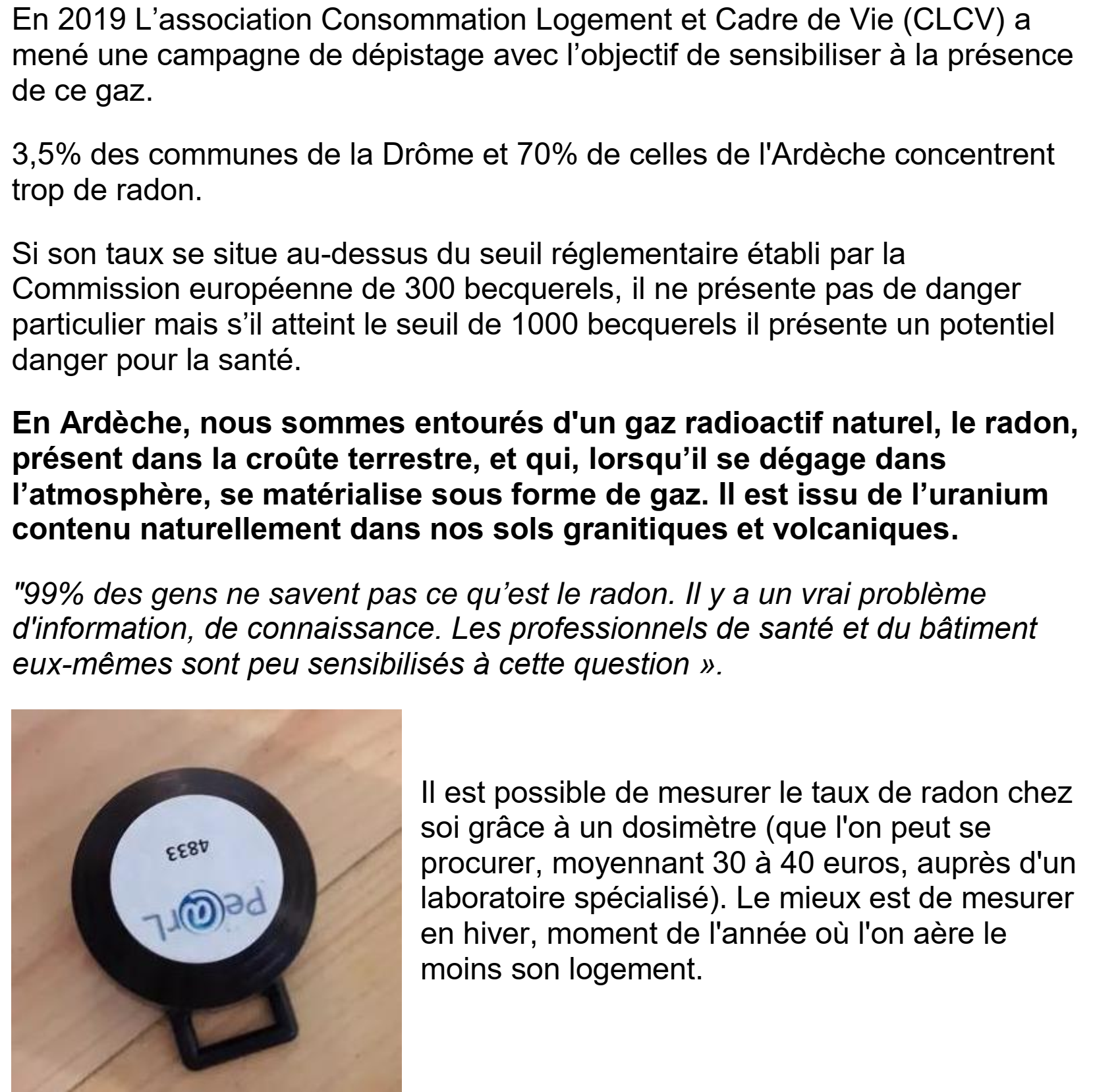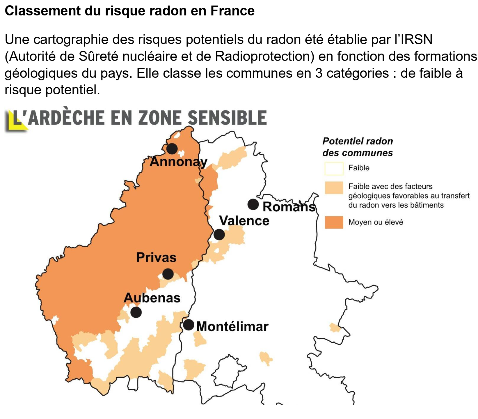 Gaz radon présent dans les sous sols de Haute Ardèche: danger potentiel