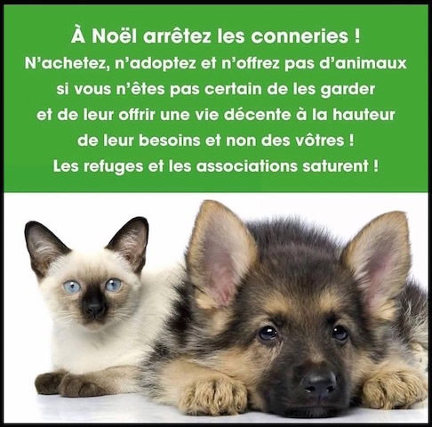 Offrir un chien ou un chat pour Noël, acheté ou acquis gratuitement , n’est pas forcément une très bonne idée car nombre de ces acquisitions se retrouveront abandonnés sur le bord de la route dès le mois de juin prochain.