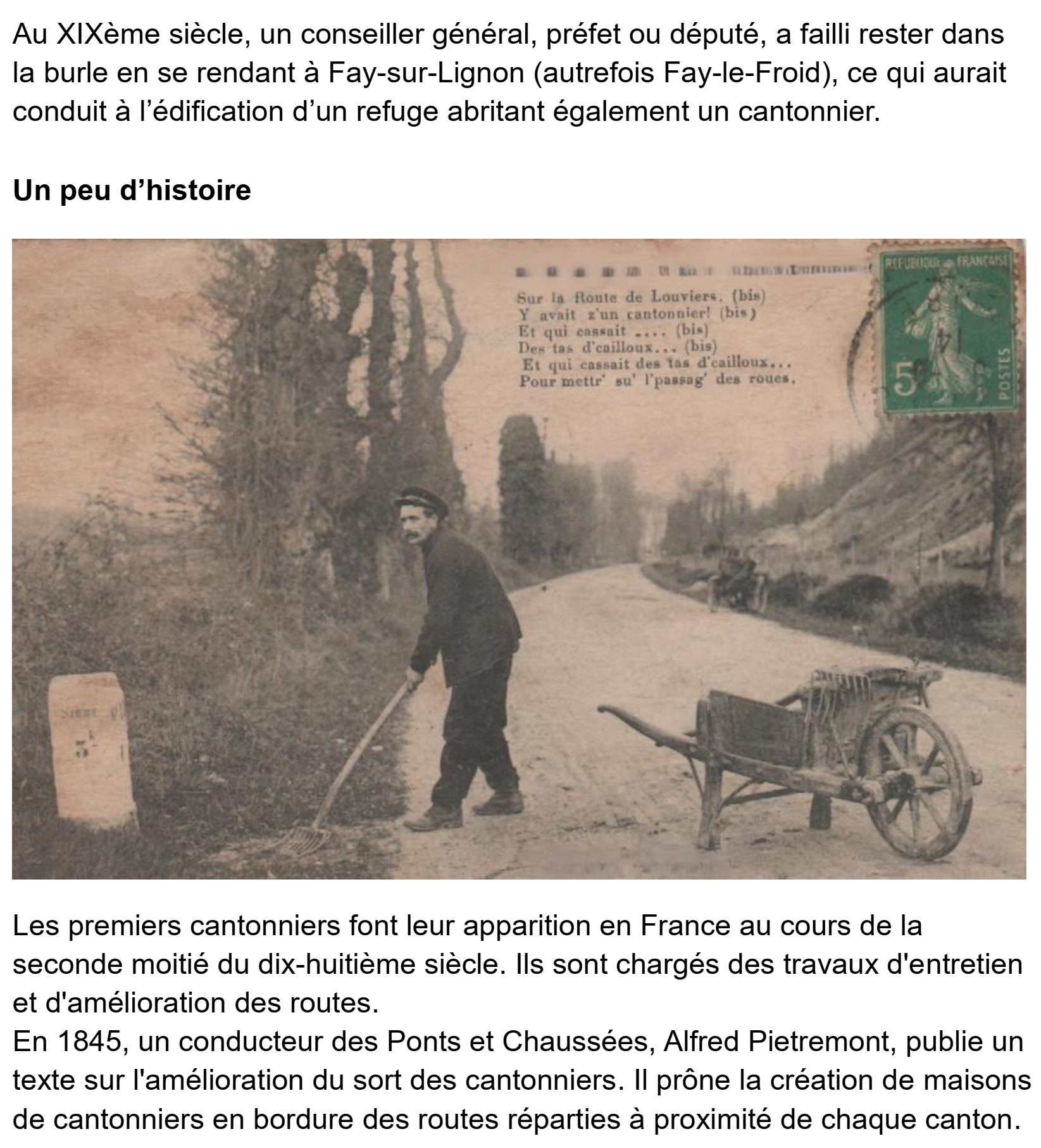1. Bel article mettant à l’honneur les cantonniers et particulièrement celui de Nozières.
