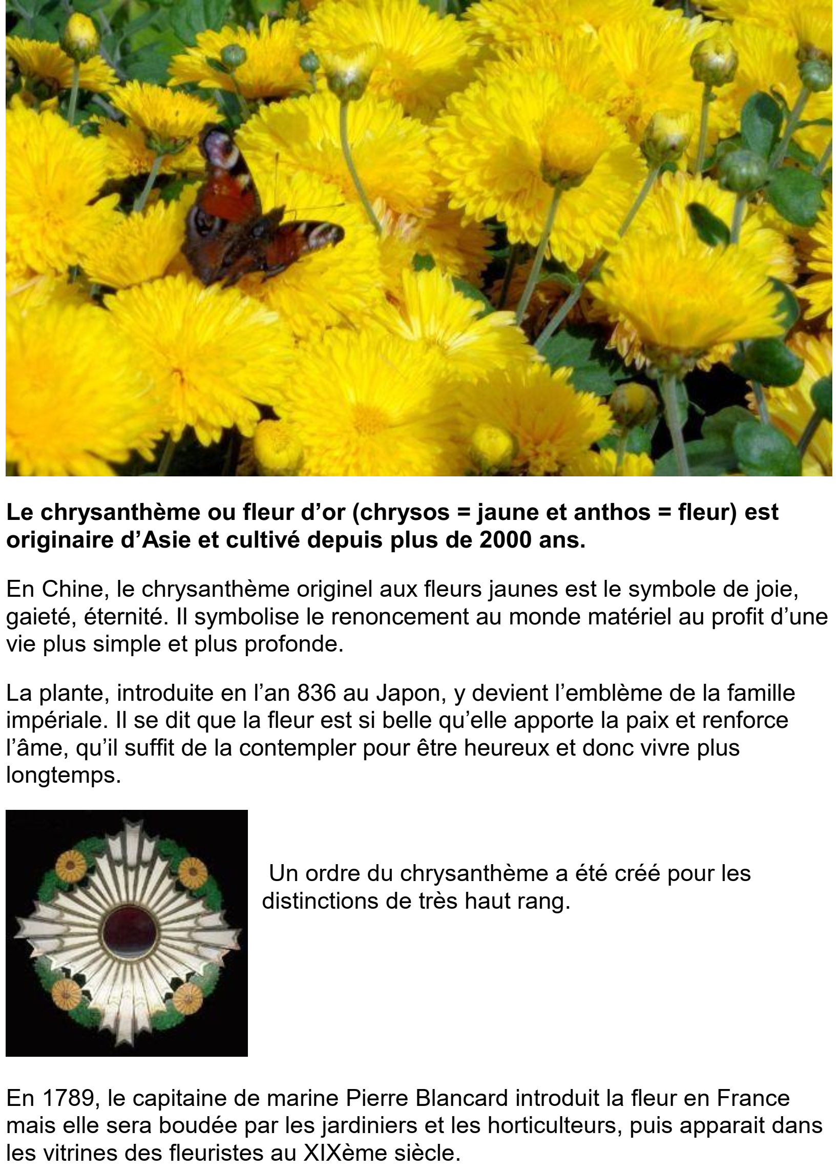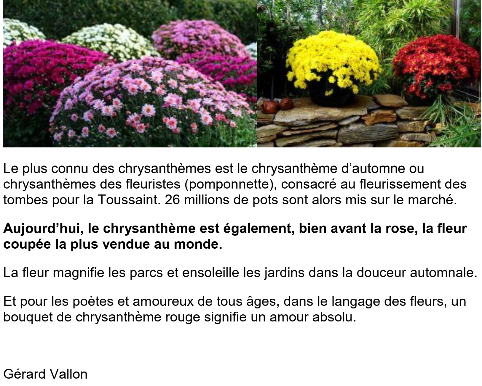 Chaque année, aux alentours du 1er novembre, il est impossible de ne pas parler de la plante symbole de la Toussaint: LE chrysanthème et non pas LA chrysanthème comme prononcé parfois.
