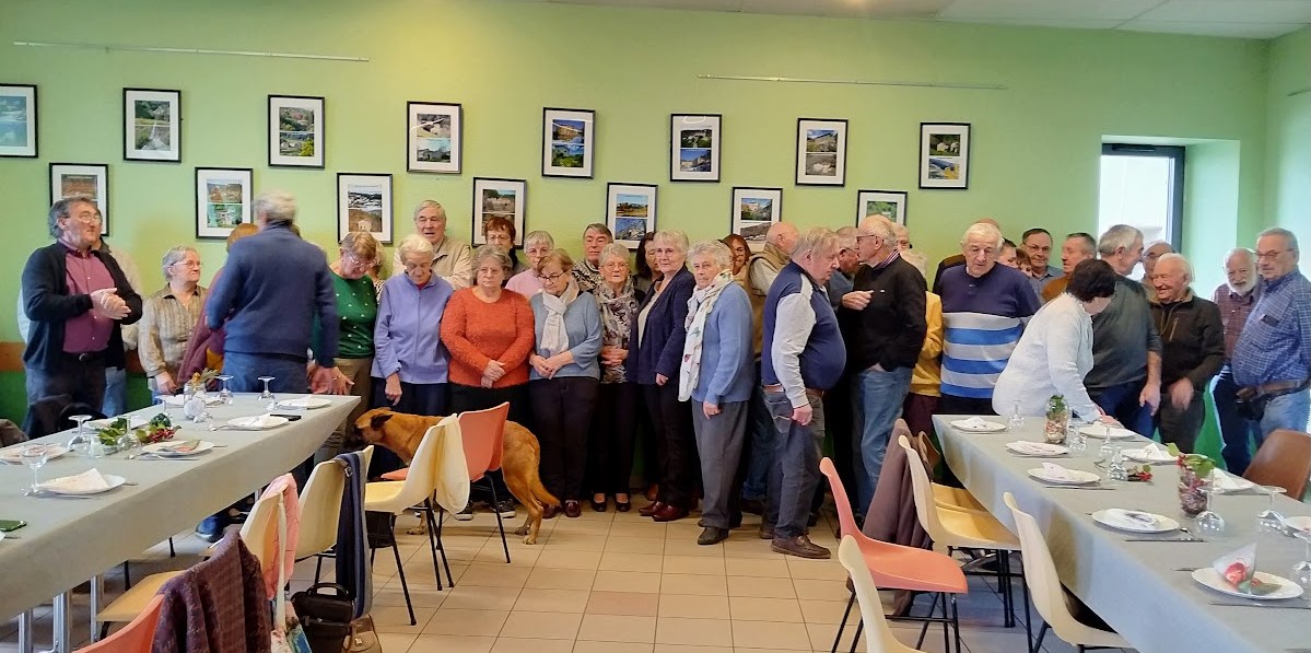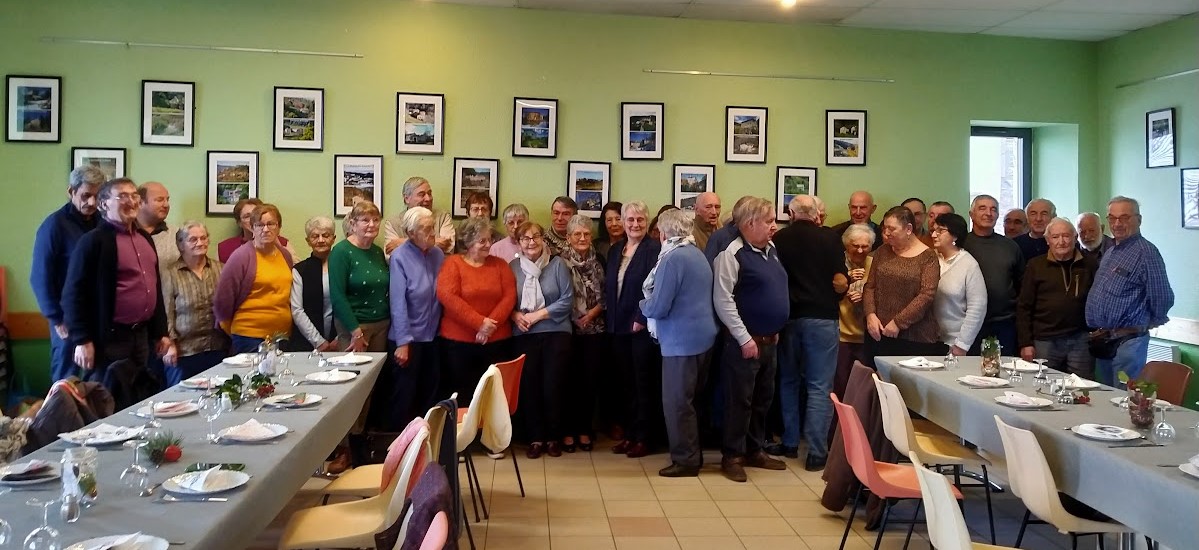 La salle des fêtes de Nozières, magnifiquement décorée de photos de Michel Henry Blanc, artiste local, que chacun a pu admirer ou commenter, a accueilli 46 convives.