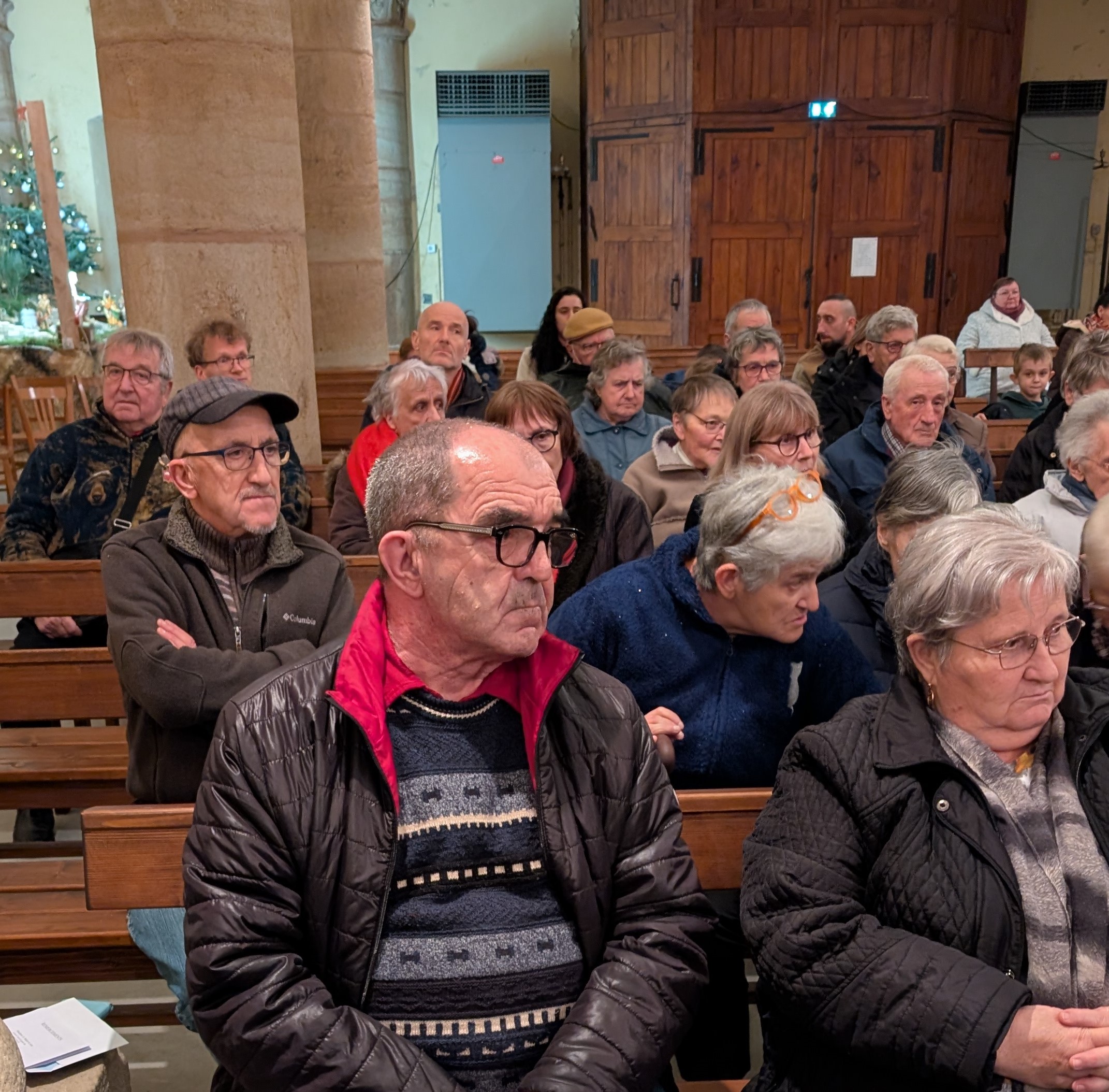 Ce samedi 20 décembre, l’église de Nozières était remplie d’un centaine de personnes venues assister au concert donné en commun par les deux chorales: les quatre ruisseaux de Lamastre et le petit choeur ardéchois de Colombier le Jeune.