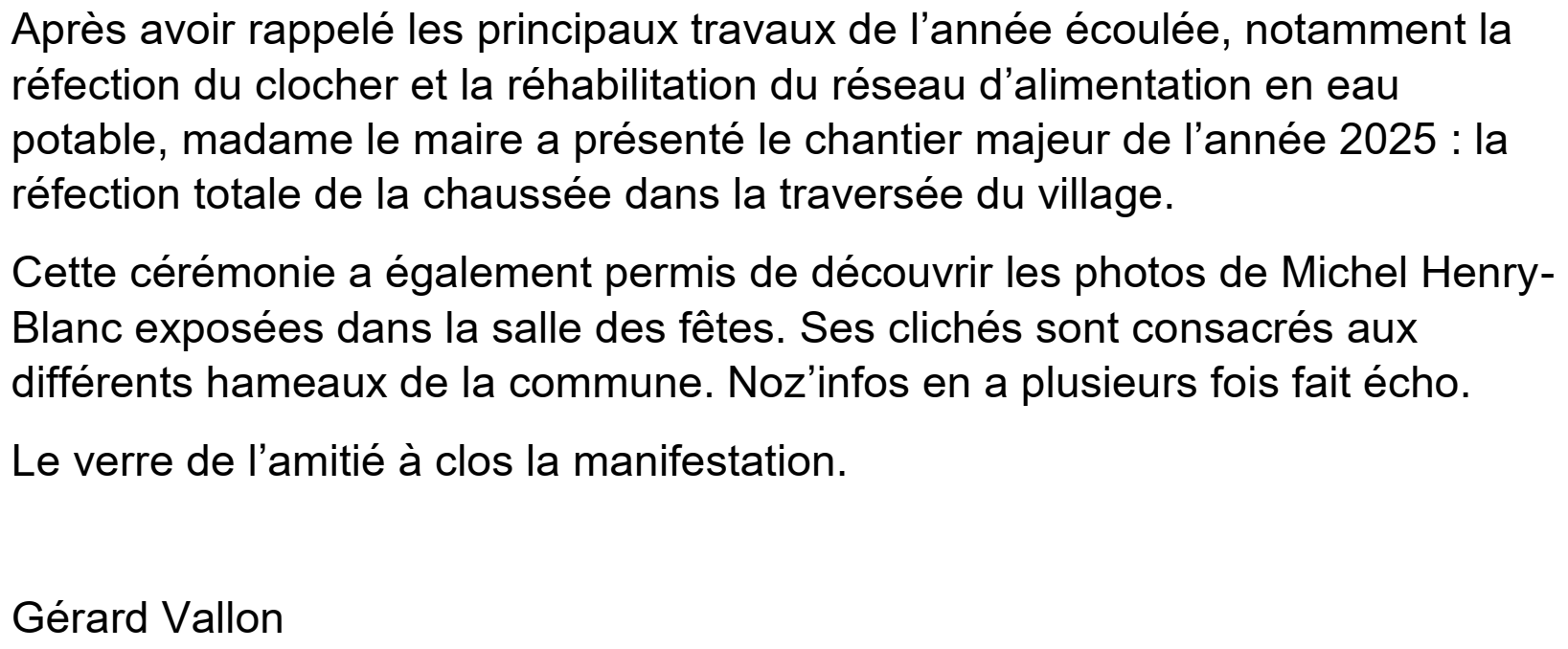 Samedi 4 janvier, Bernadette Coste, maire de Nozières, et son conseil municipal avaient donné rendez-vous aux administrés pour la traditionnelle cérémonie des vœux. Plusieurs élus des communes environnantes et le sénateur Mathieu Darnaud étaient présents.