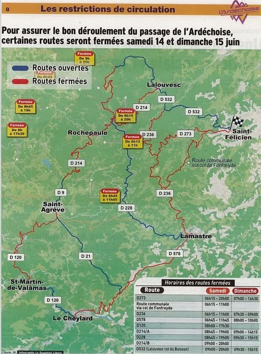 Ce même jour, la route de Saint Félicien à Nozières en passant par le col de Boursan, sera réservée aux cyclotouristes de 7h15 à 10h.