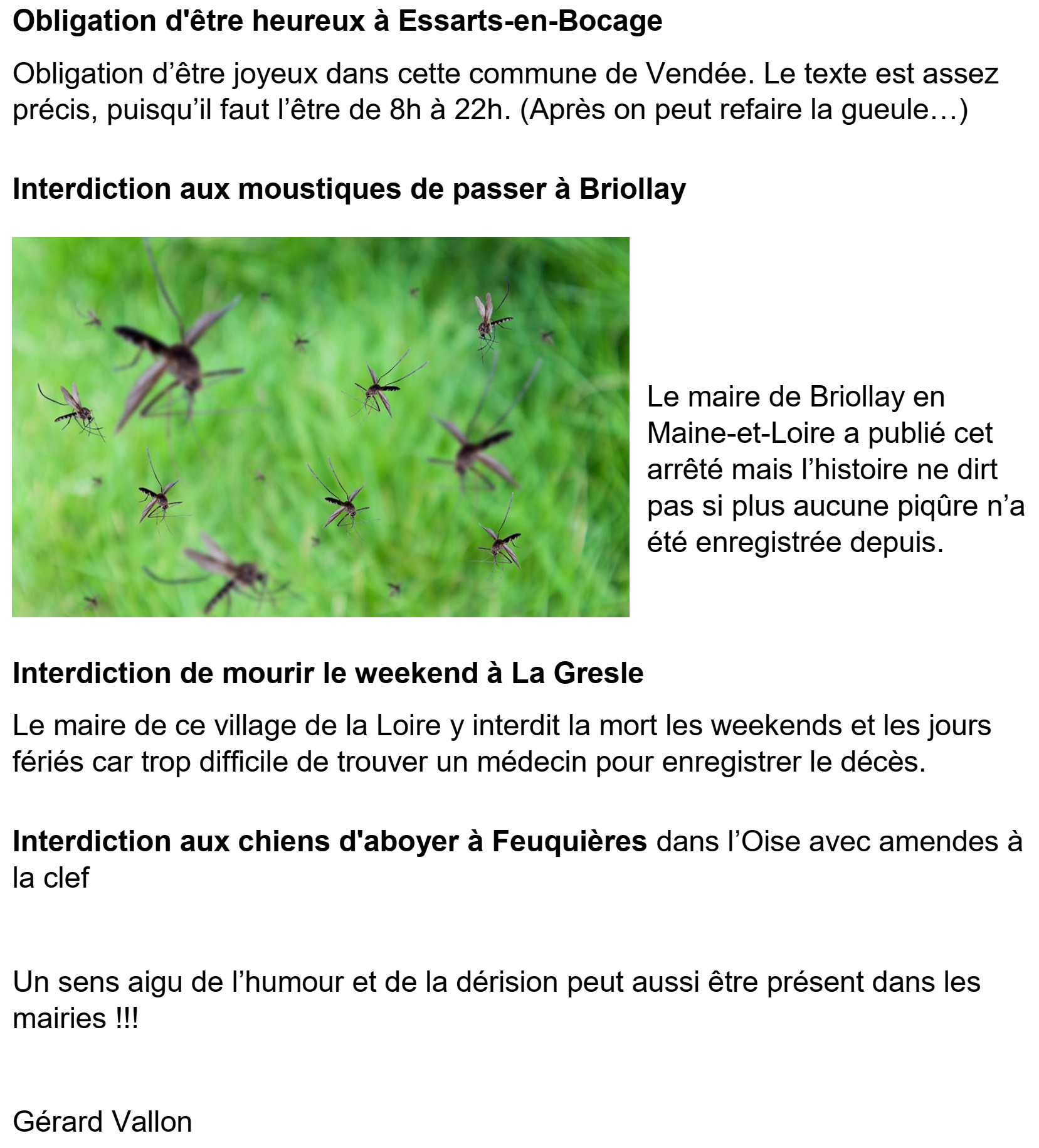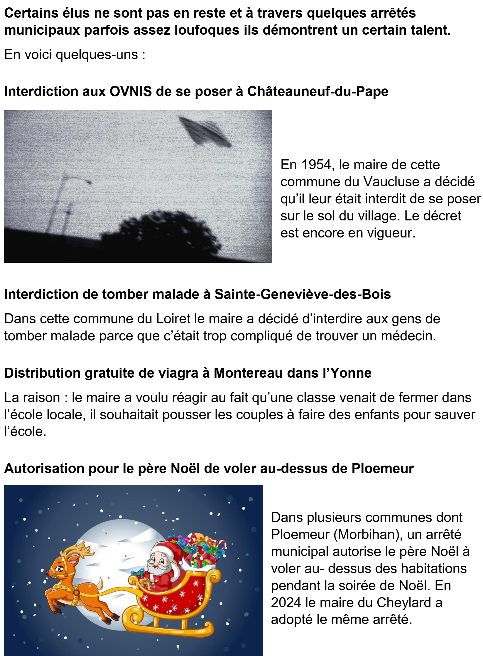Le maire déclare que dans les maisons d’habitation ces 2 points ne sont pas respectés, ce qui justifie sa décision. L’affaire remontera au niveau national et France 3, venu sur place par une journée de burle, consacrera une séquence dans le magazine de l’imprévisible sous le titre de « La stratégie du Trompe-Couillon »…