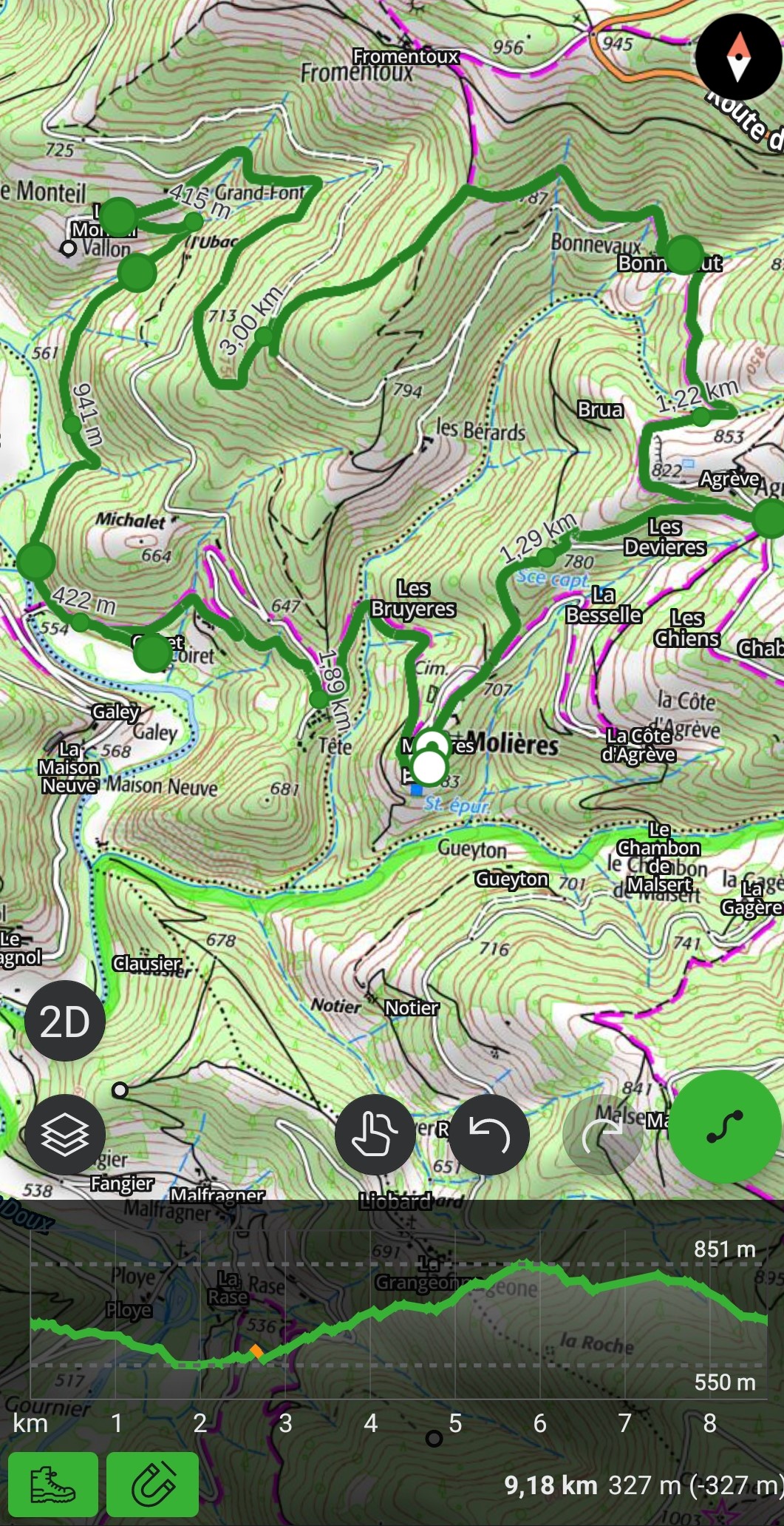 Boucle de 9 kilomètres avec environ 300 mètres de dénivelé.