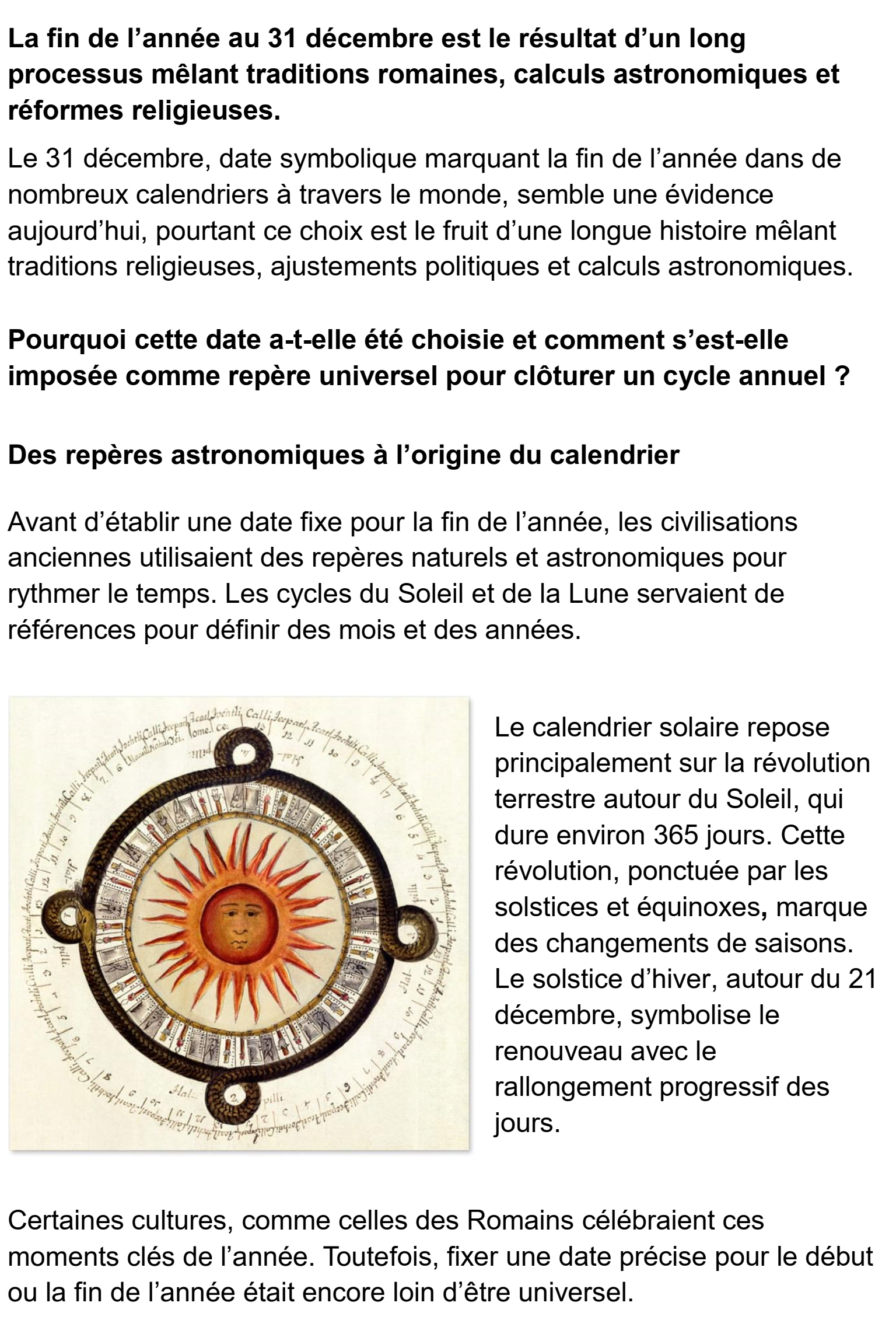 Le 31 décembre, date symbolique marquant la fin de l’année dans de nombreux calendriers à travers le monde, semble une évidence aujourd’hui, pourtant ce choix est le fruit d’une longue histoire.