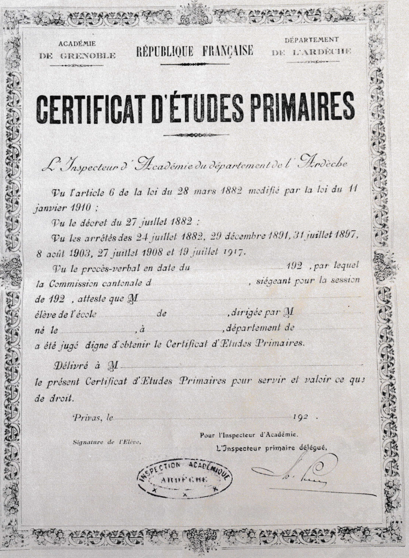 Le diplôme sanctionnait sept années d’études primaires et marquait pour beaucoup l’entrée dans la vie active. Le candidat classé premier du canton connaissait une gloire locale: l’évènement donnait lieu à une manifestation officielle réunissant élus et notables qui remettaient prix et diplômes.