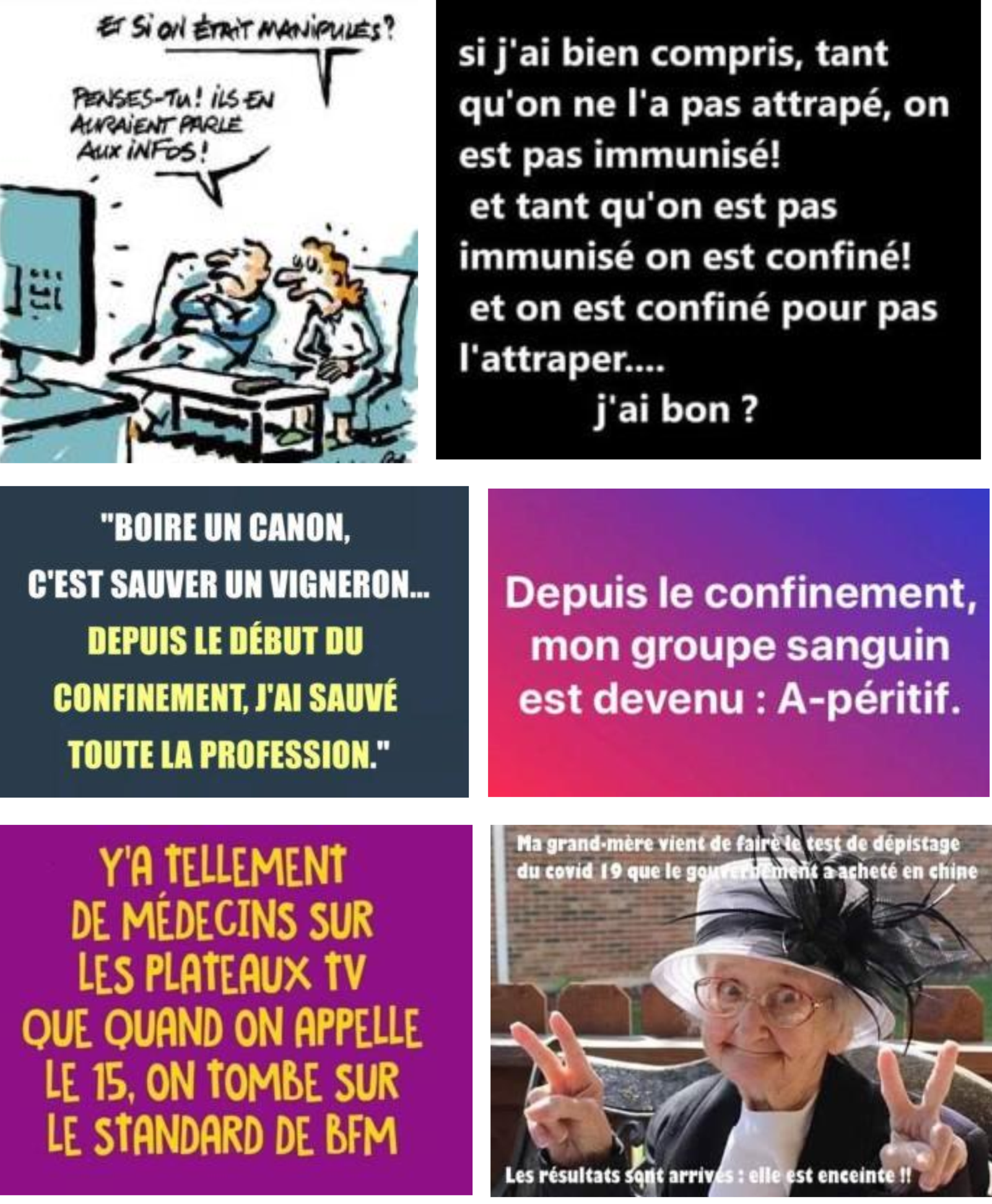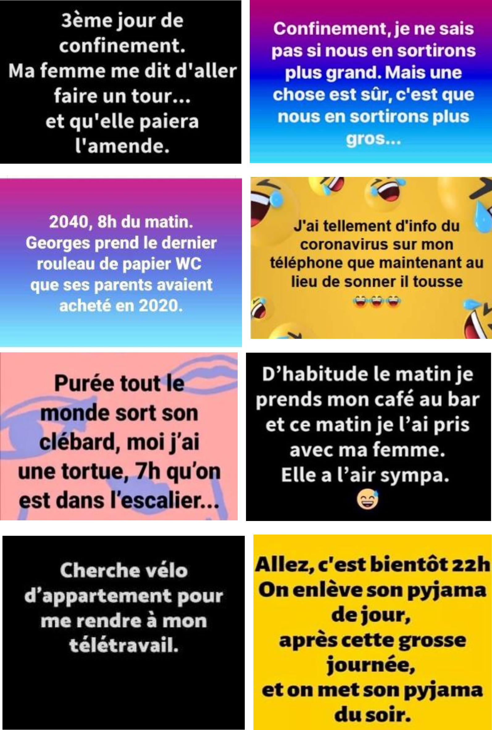 Petit florilège relevé sur les réseaux sociaux (fautes d’orthographe comprises) depuis le confinement de début 2020.