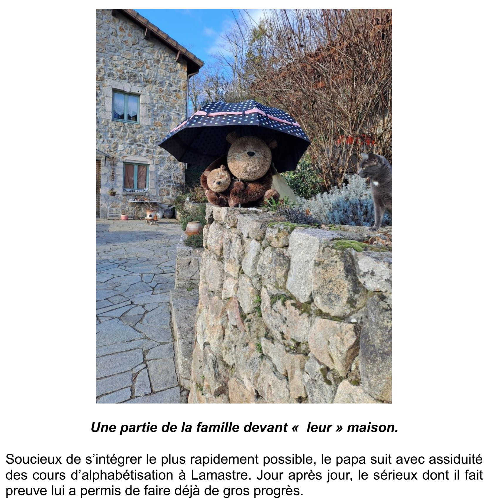 Rêverie, tendresse, voilà de quoi oublier un temps la cruauté de l’actualité; c’est bienvenu pour Noël. Désaignes terre d’accueil reconnue: réfugiés, persécutés, migrants….